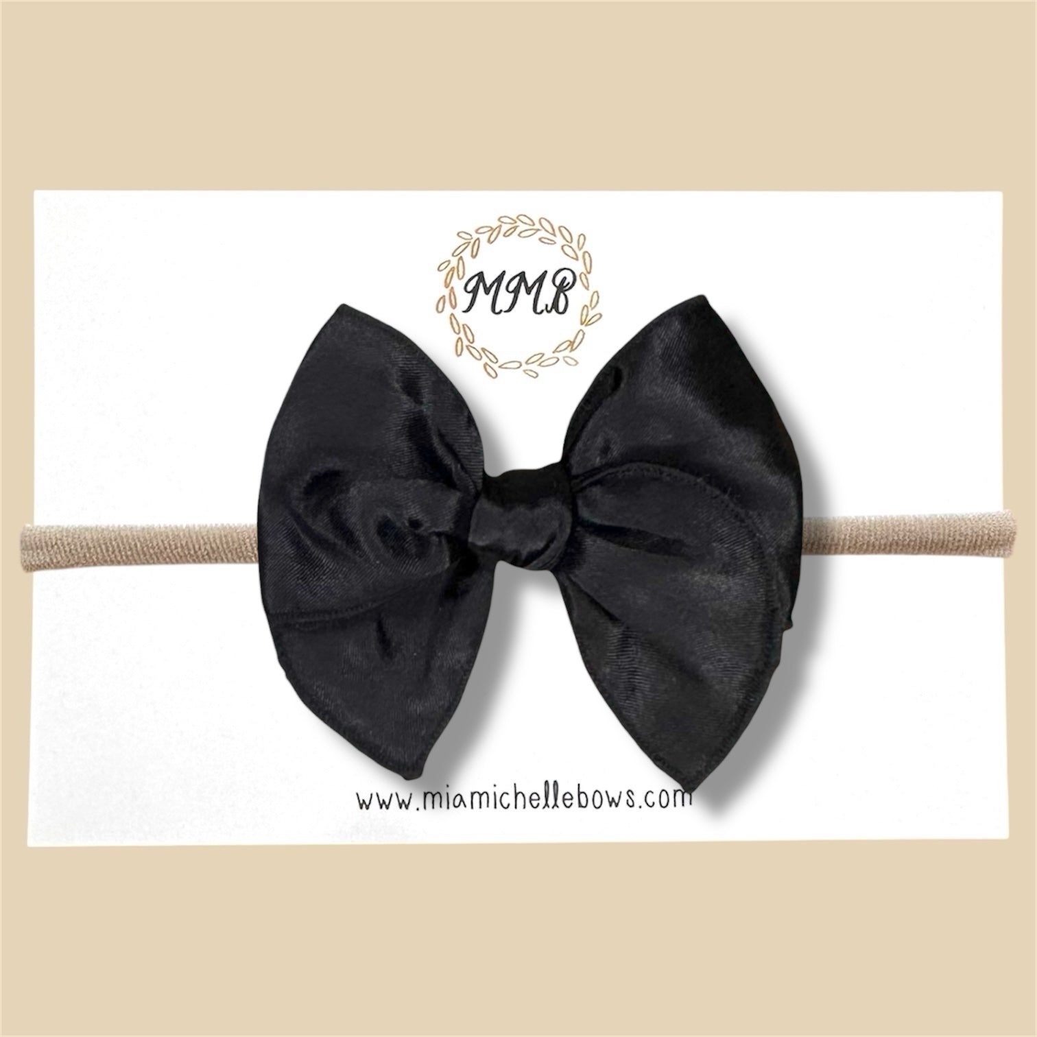 A single darling handmade bow in your choice of size on a soft nylon headband or clip.