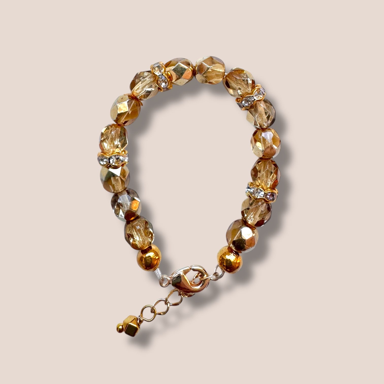 High Quality 14k Gold plated clasp and chain on this gorgeous bracelet.  The chain has sealed links so they cannot be easily pulled apart, and it can be adjusted to the perfect size. They are double strung on 2 coated wires to be extra durable and prevent breaking. These bracelets are not stretchy and can not be easily removed by children once clasped to the appropriate size.