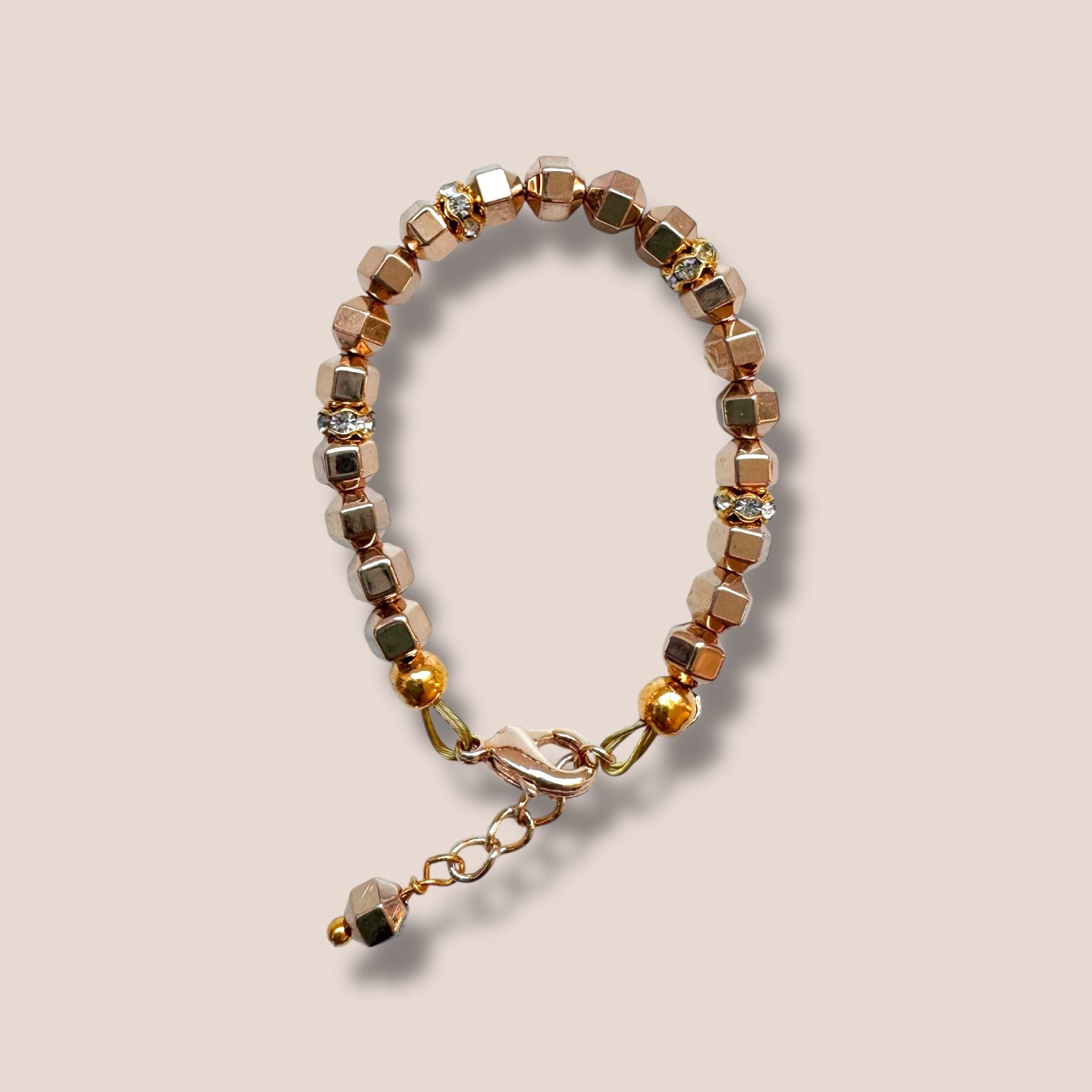High Quality 14k Gold plated clasp and chain on this gorgeous bracelet.  The chain has sealed links so they cannot be easily pulled apart, and it can be adjusted to the perfect size. They are double strung on 2 coated wires to be extra durable and prevent breaking. These bracelets are not stretchy and can not be easily removed by children once clasped to the appropriate size.