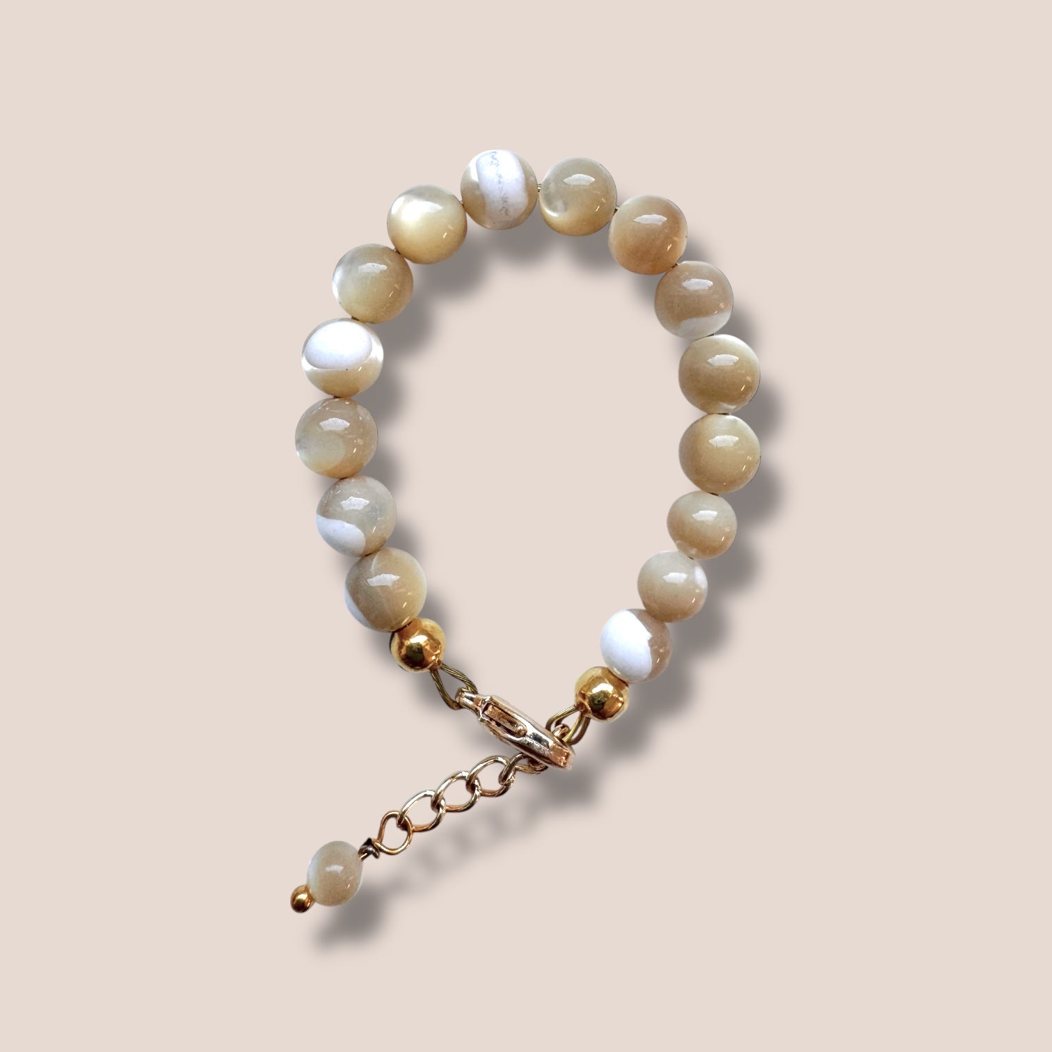 High Quality 14k Gold plated clasp and chain on this gorgeous bracelet.  The chain has sealed links so they cannot be easily pulled apart, and it can be adjusted to the perfect size. They are double strung on 2 coated wires to be extra durable and prevent breaking. These bracelets are not stretchy and can not be easily removed by children once clasped to the appropriate size.