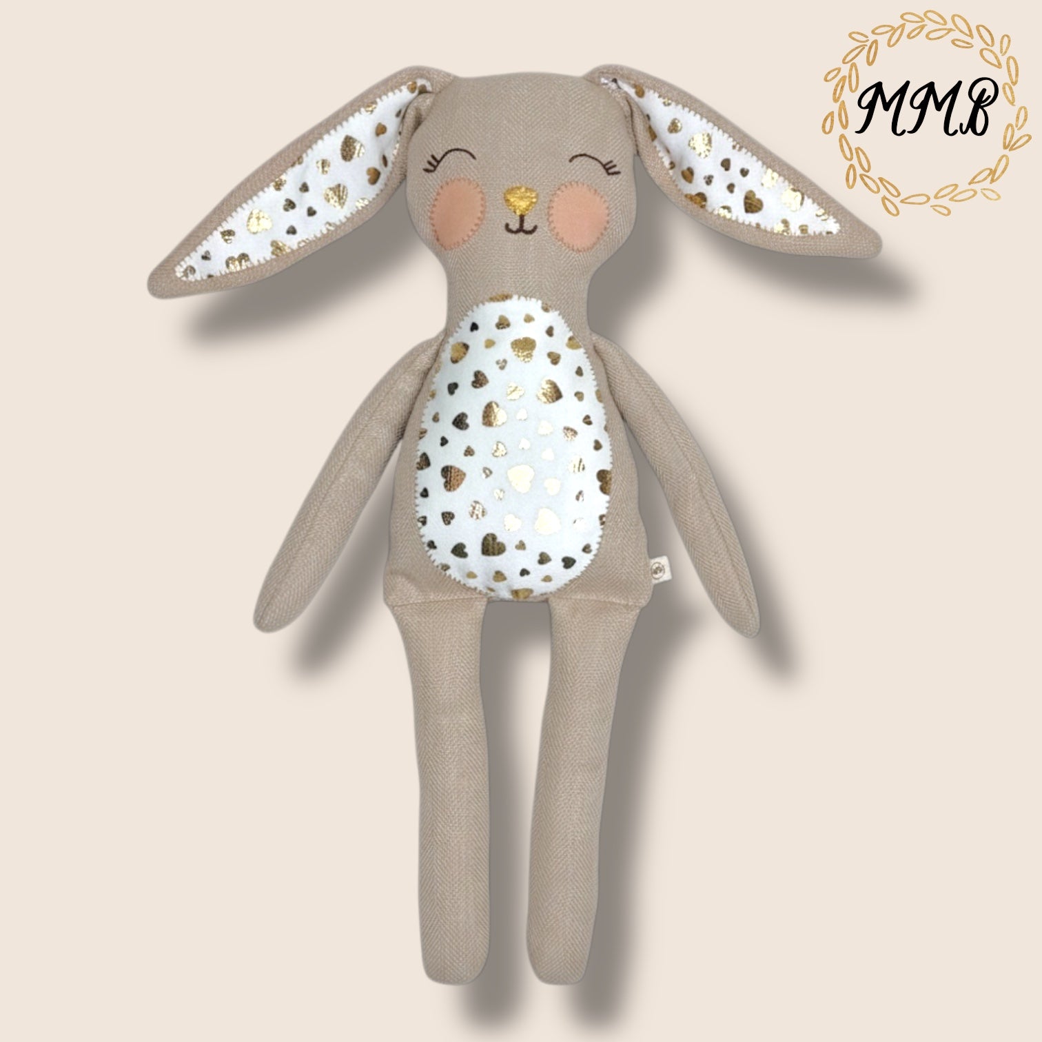 The adorable face is hand-embroidered with care, giving each little critter its own unique expression. Long floppy ears, extra-huggy arms, and a fluffy little tail make this bunny irresistible for snuggles, playtime, and keepsake memories.