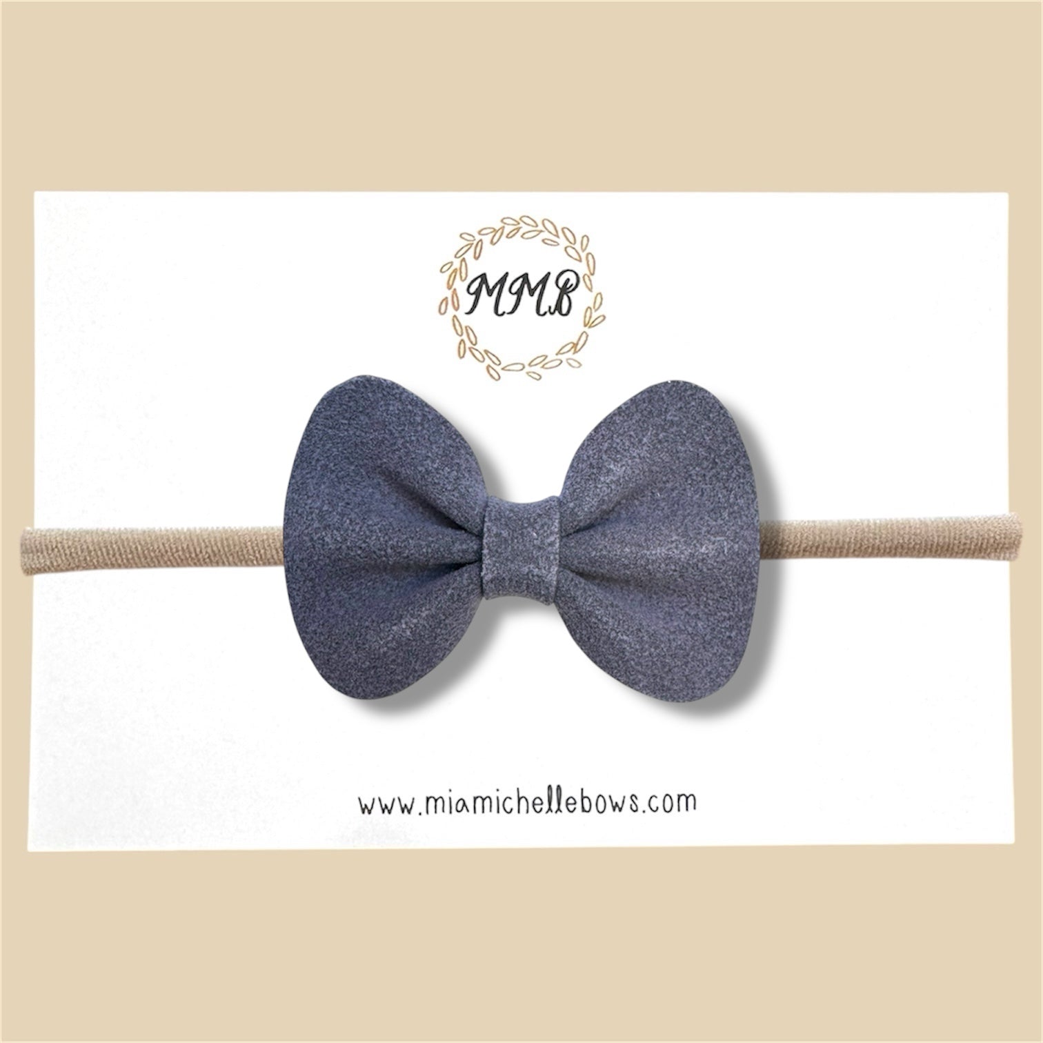 Adorable Bow made from faux leather. Measures approximately 2.75 inches across.  Available as a headband or clip!
