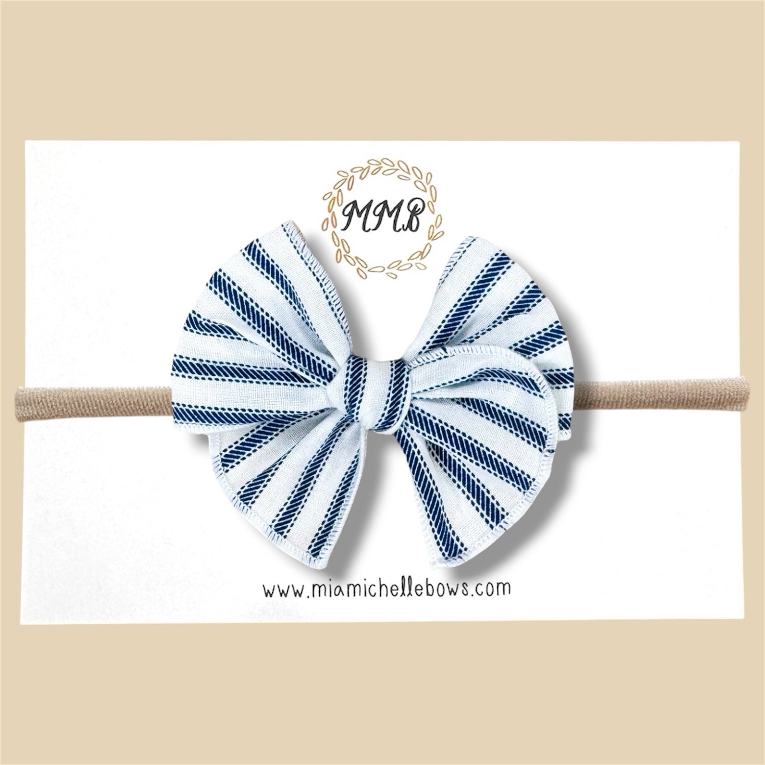 A single darling handmade bow in your choice of size on a soft nylon headband or clip.