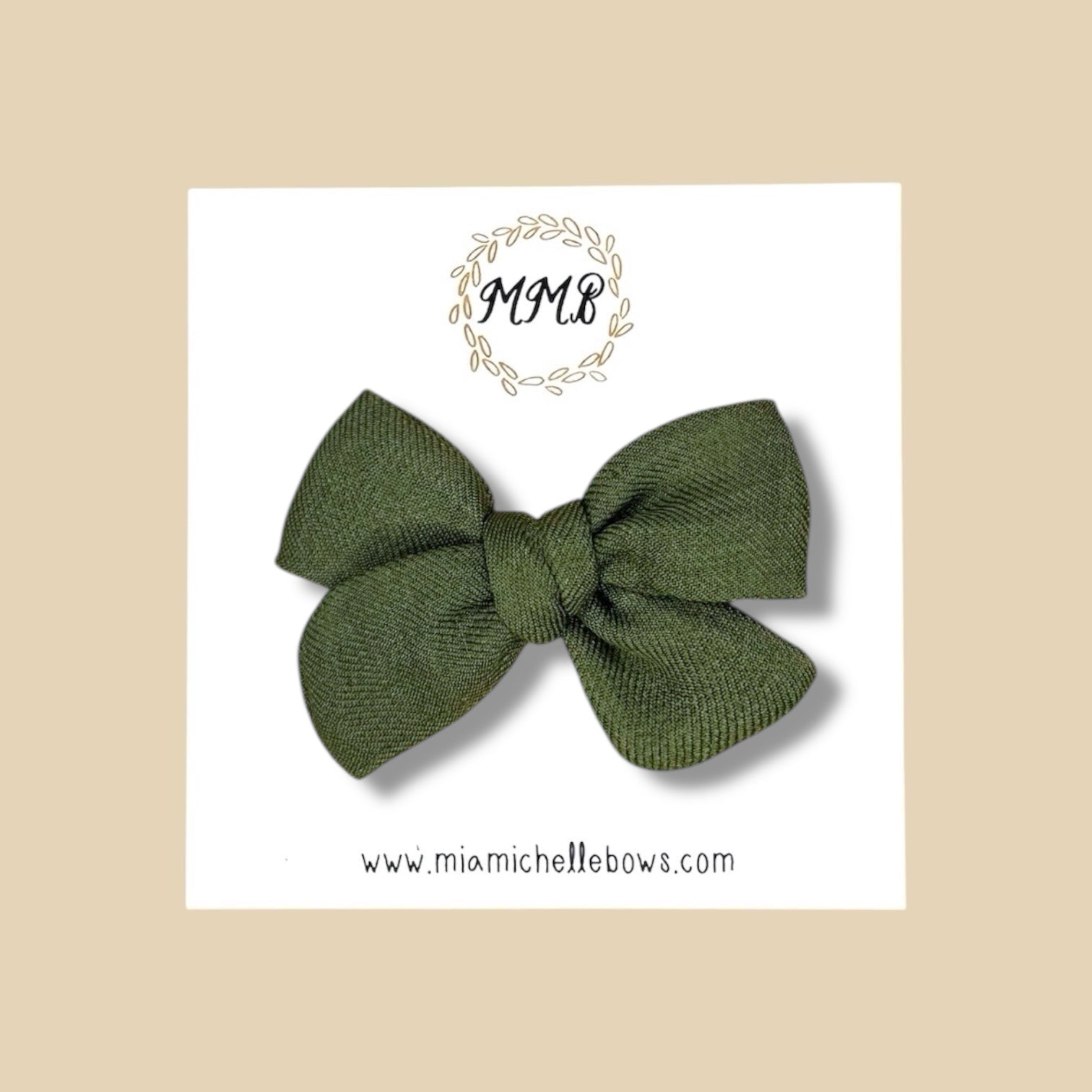 A single darling hand-tied bow in your choice of size on a soft nylon headband or clip.