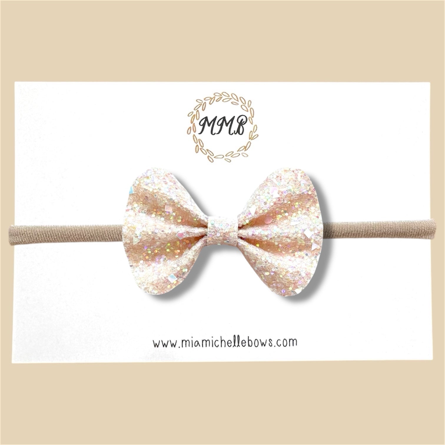 Dazzling Glitter Bow. Made from shed resistant glitter fabric. Measures approximately 2.75 inches across. Available as a headband or clip!