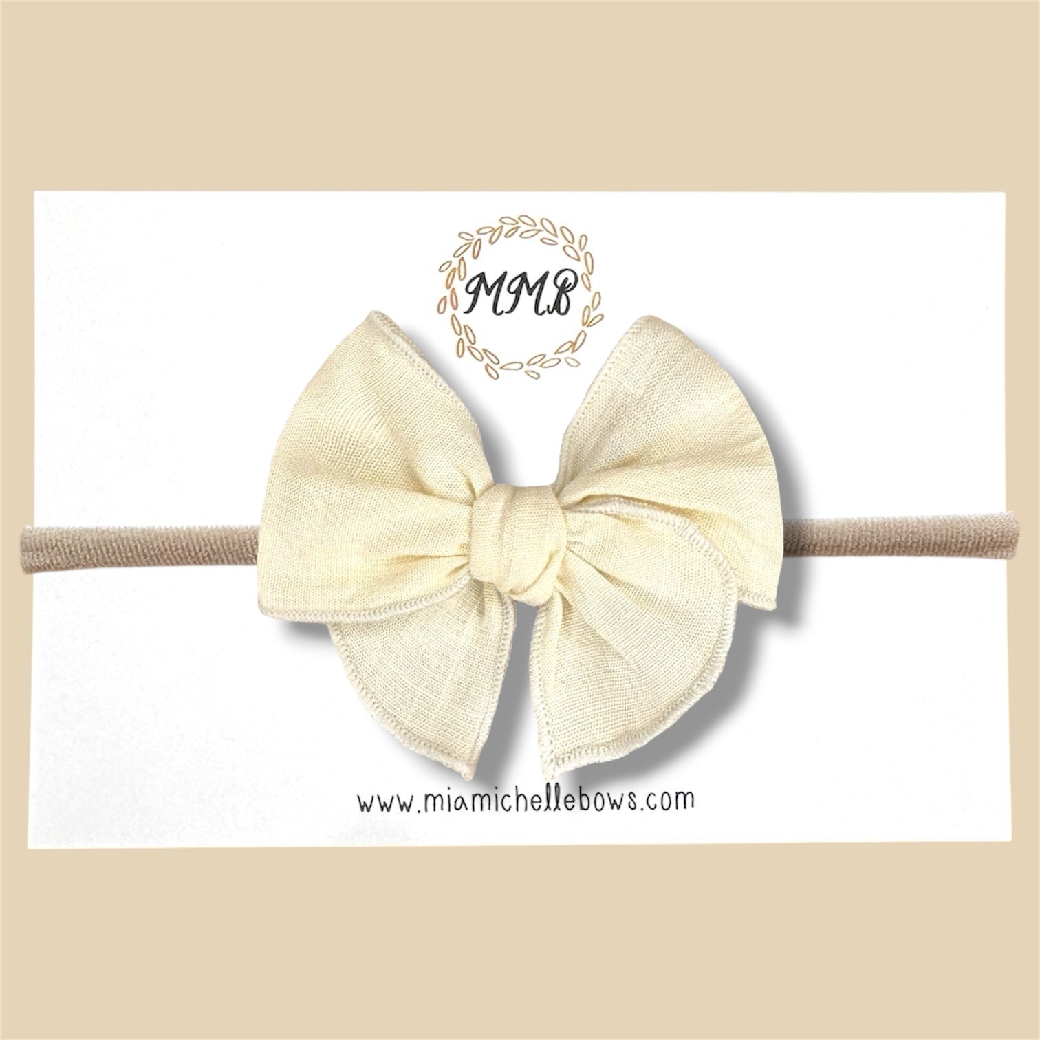 A single darling handmade bow in your choice of size on a soft nylon headband or clip.
