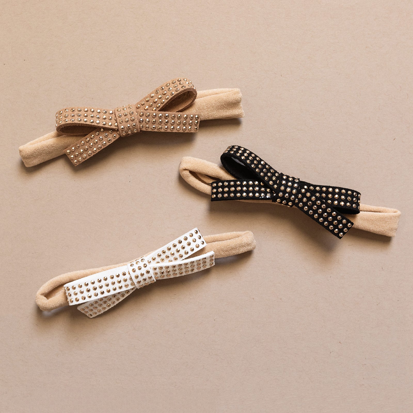 Set of 3 vegan leather studded bows. Should be worn under supervision.