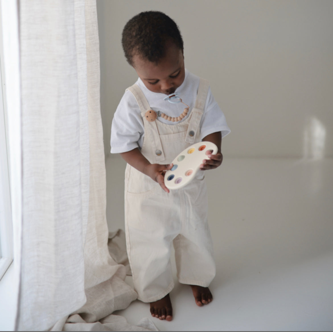 Made with little hands in mind, our paint palette press toy encourages sensory exploration and the development of fine motor skills with its simple design and soft colors. Featuring food grade silicone and a BPA-free plastic frame, children will tap into learning as they press the bubbles and hear a gentle pop. This toy is inspired by arts and crafts and holds the attention of babies and older kids with endless opportunities for play.