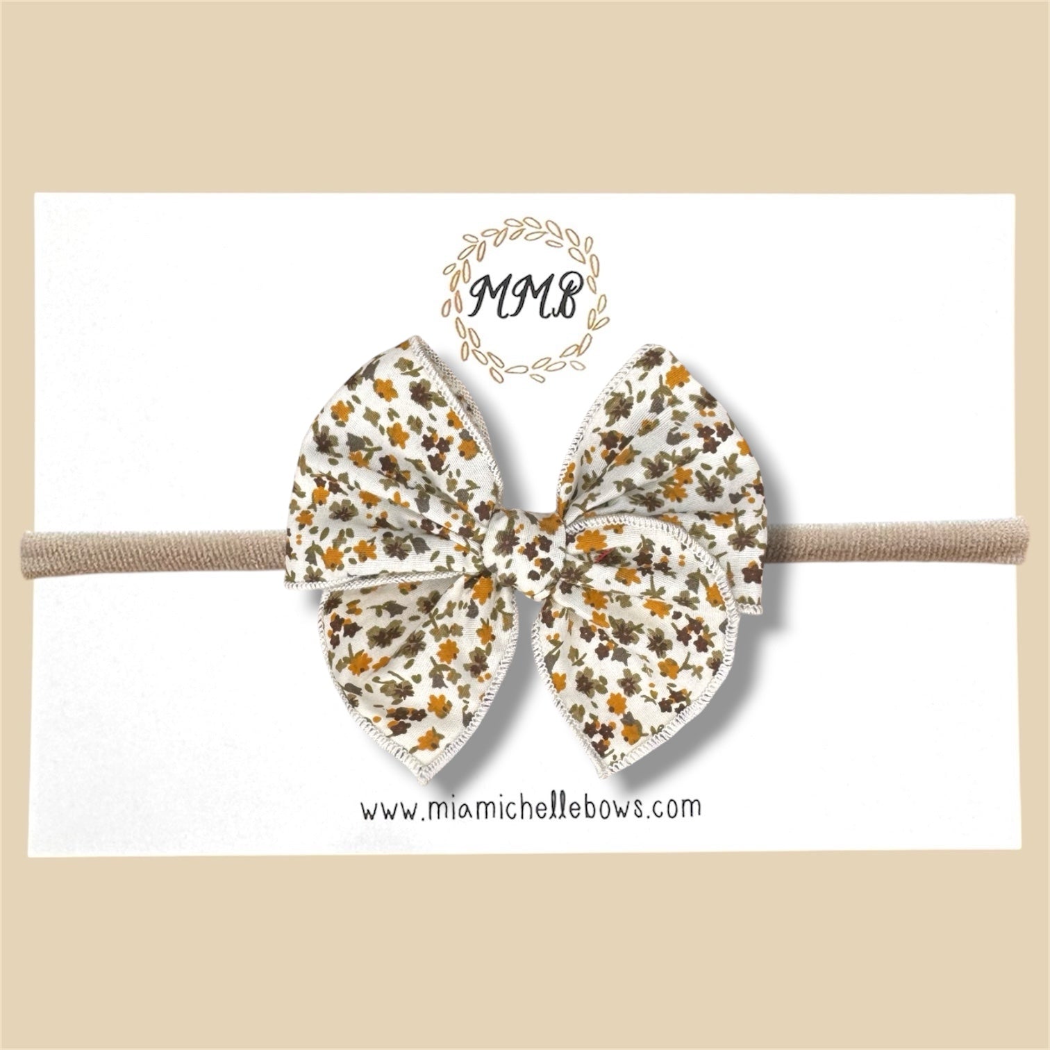 A single darling handmade bow in your choice of size on a soft nylon headband or clip.