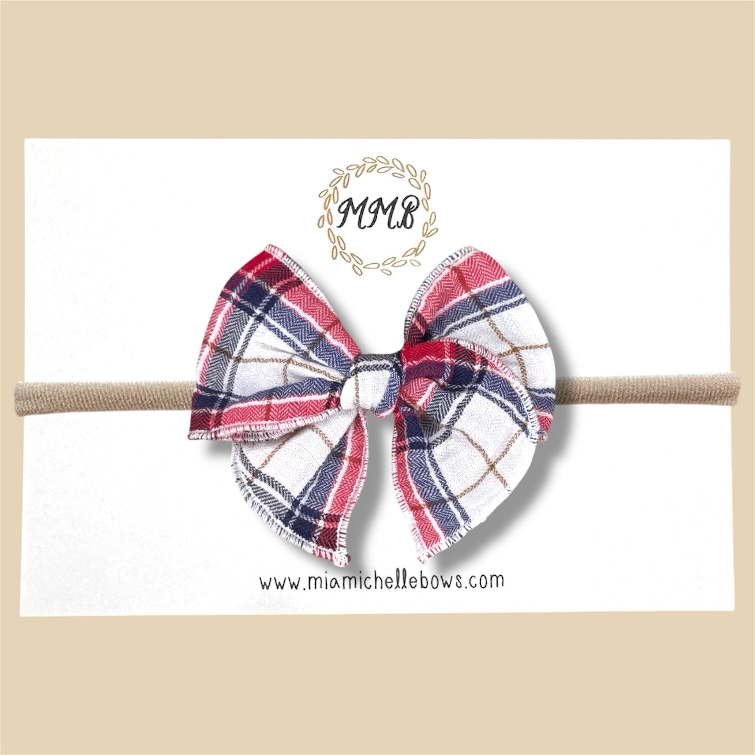 A single darling handmade bow in your choice of size on a soft nylon headband or clip.