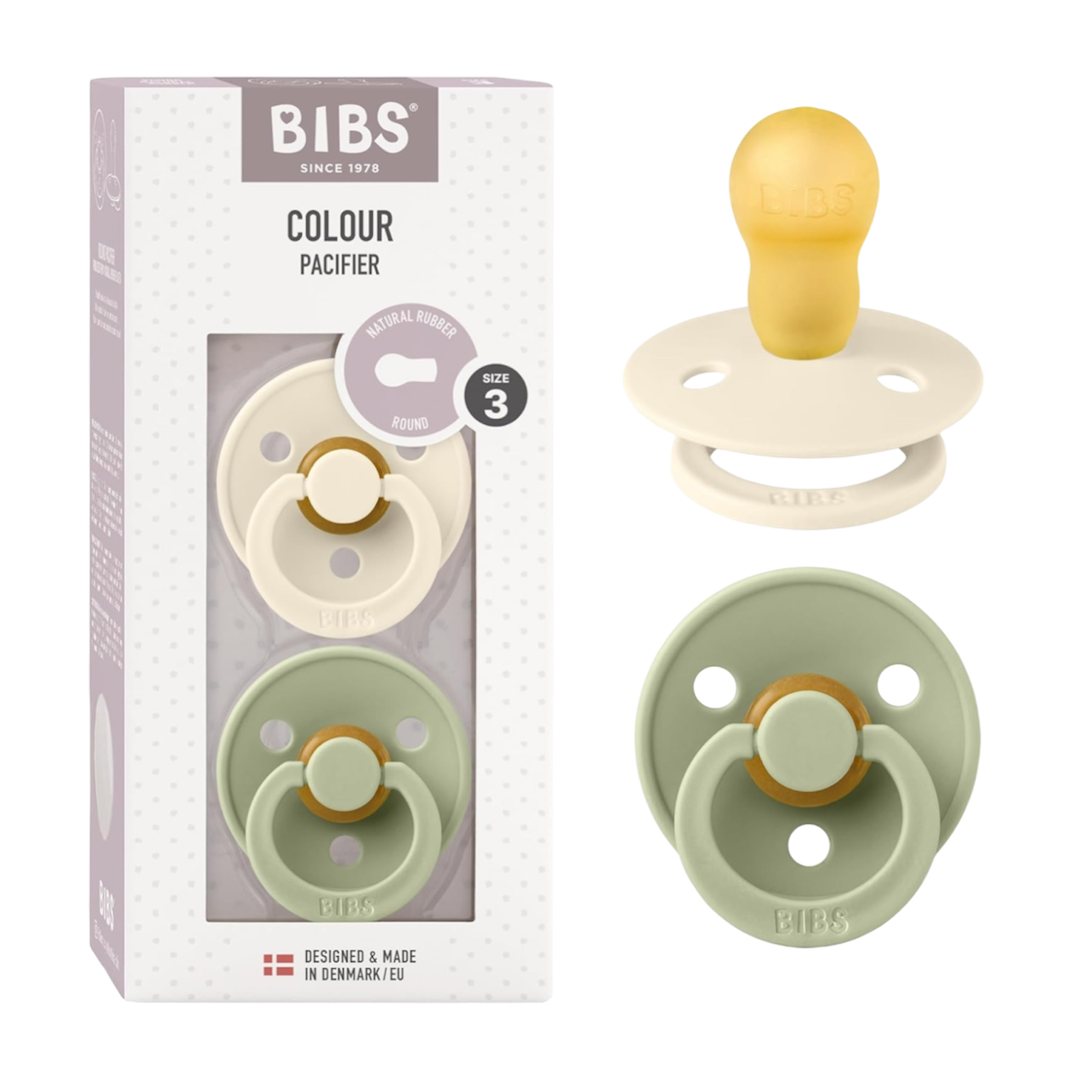 Size 3 Bibs Colour Rubber Pacifier 2 Pack- Ivory/ Sage