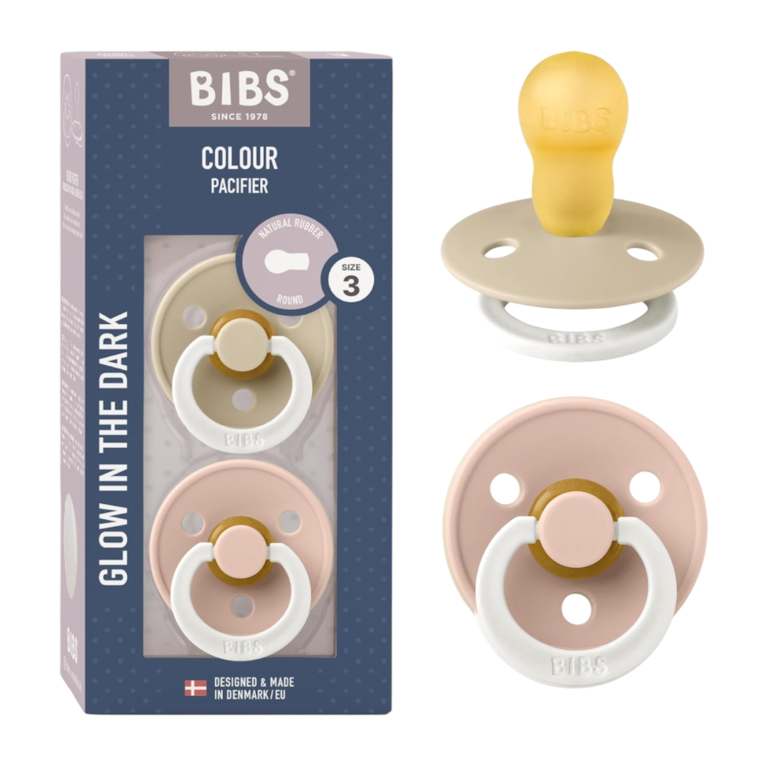 Size 3 Bibs Glow Colour Rubber Pacifier 2 Pack- Vanilla Glow/ Blush Glow
