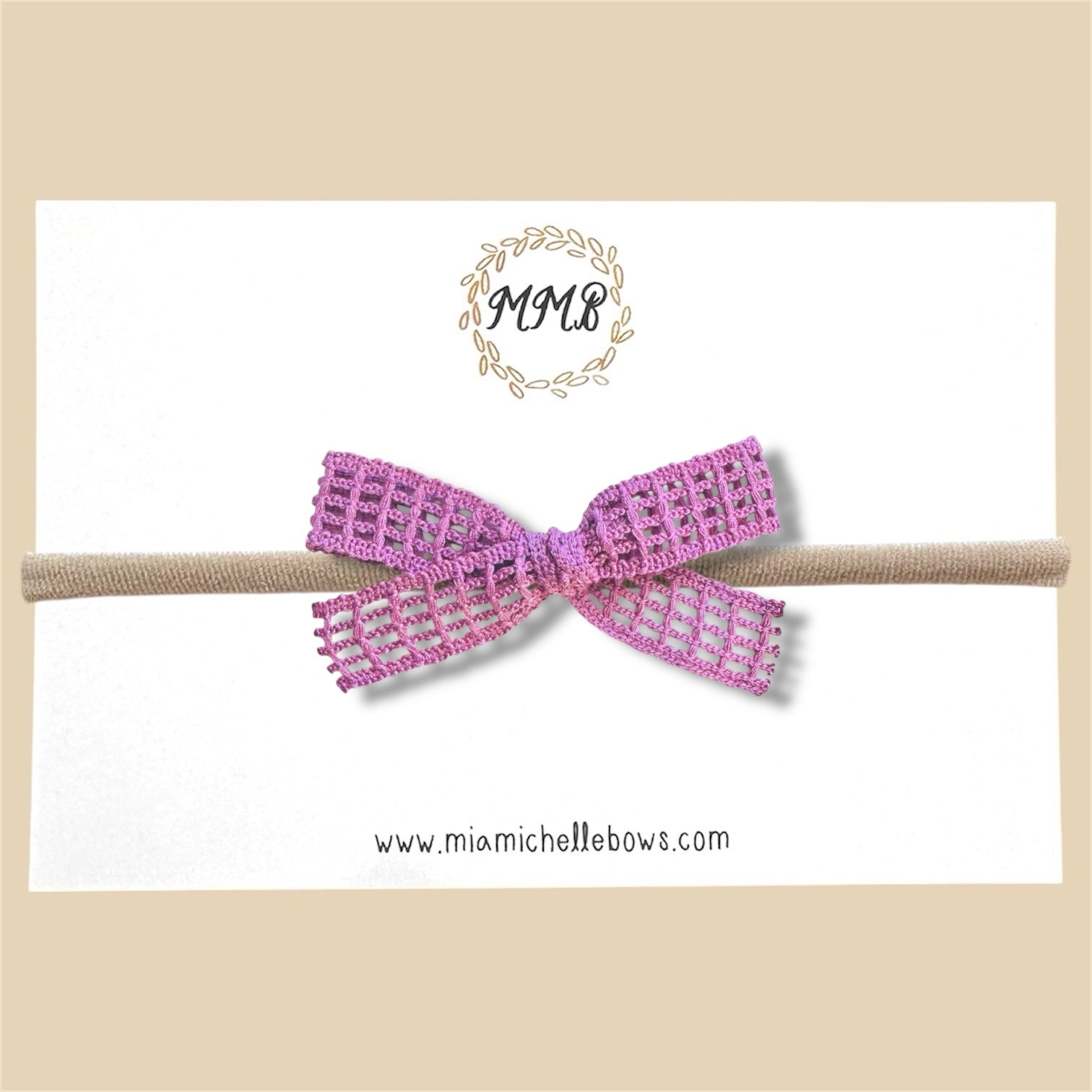 Lace Bow available on super soft nylon headband or clip. Measures about 3.25 x 1.5 inches across.