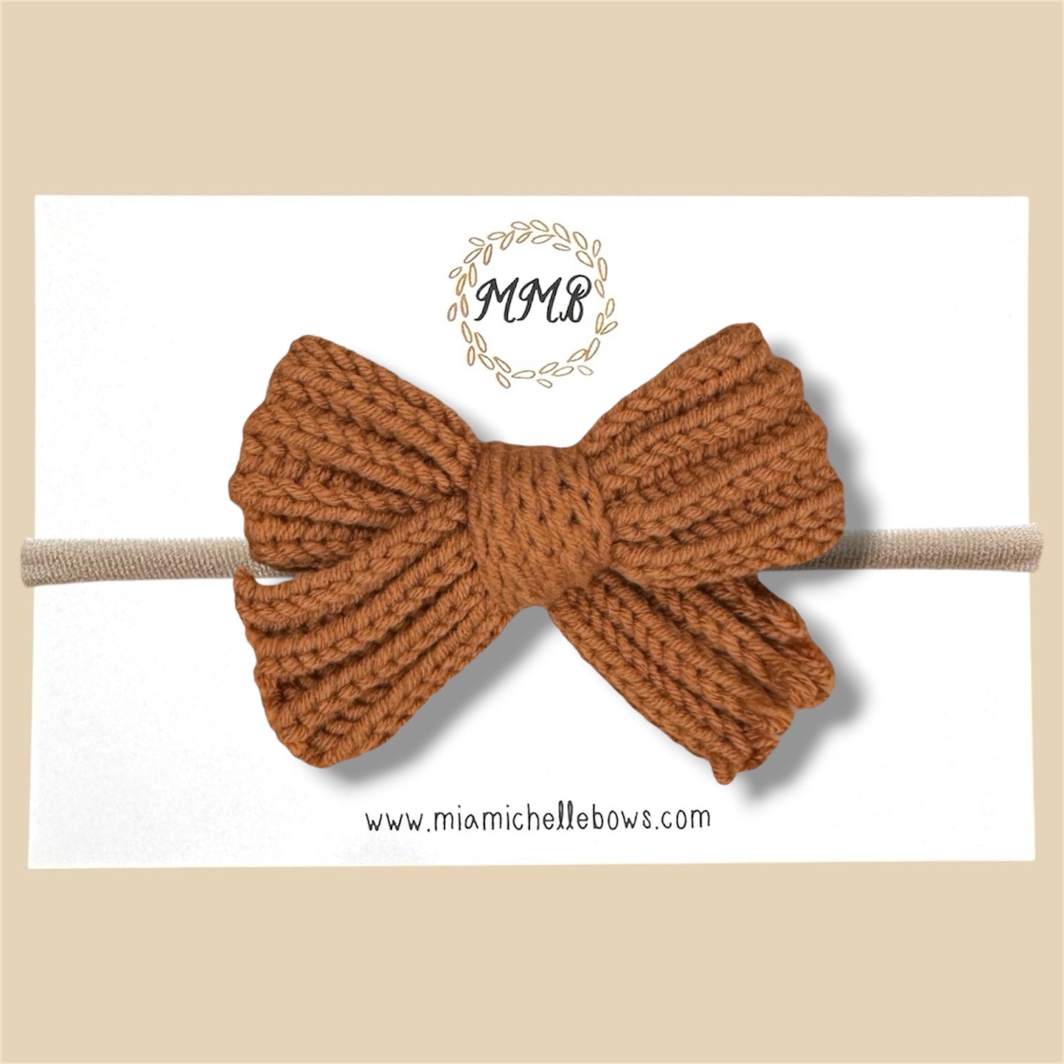 A single knit bow on a clip or headband (about 4 inches).