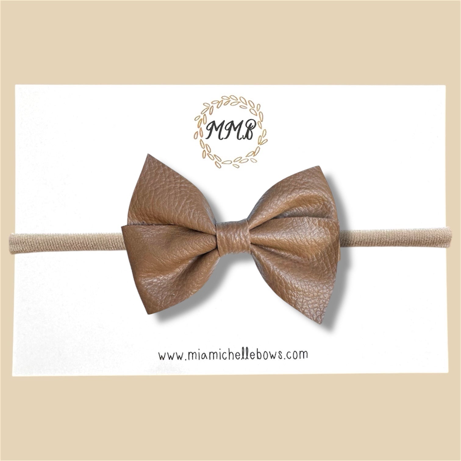 Tan Pinwheel Vegan Leather Bow