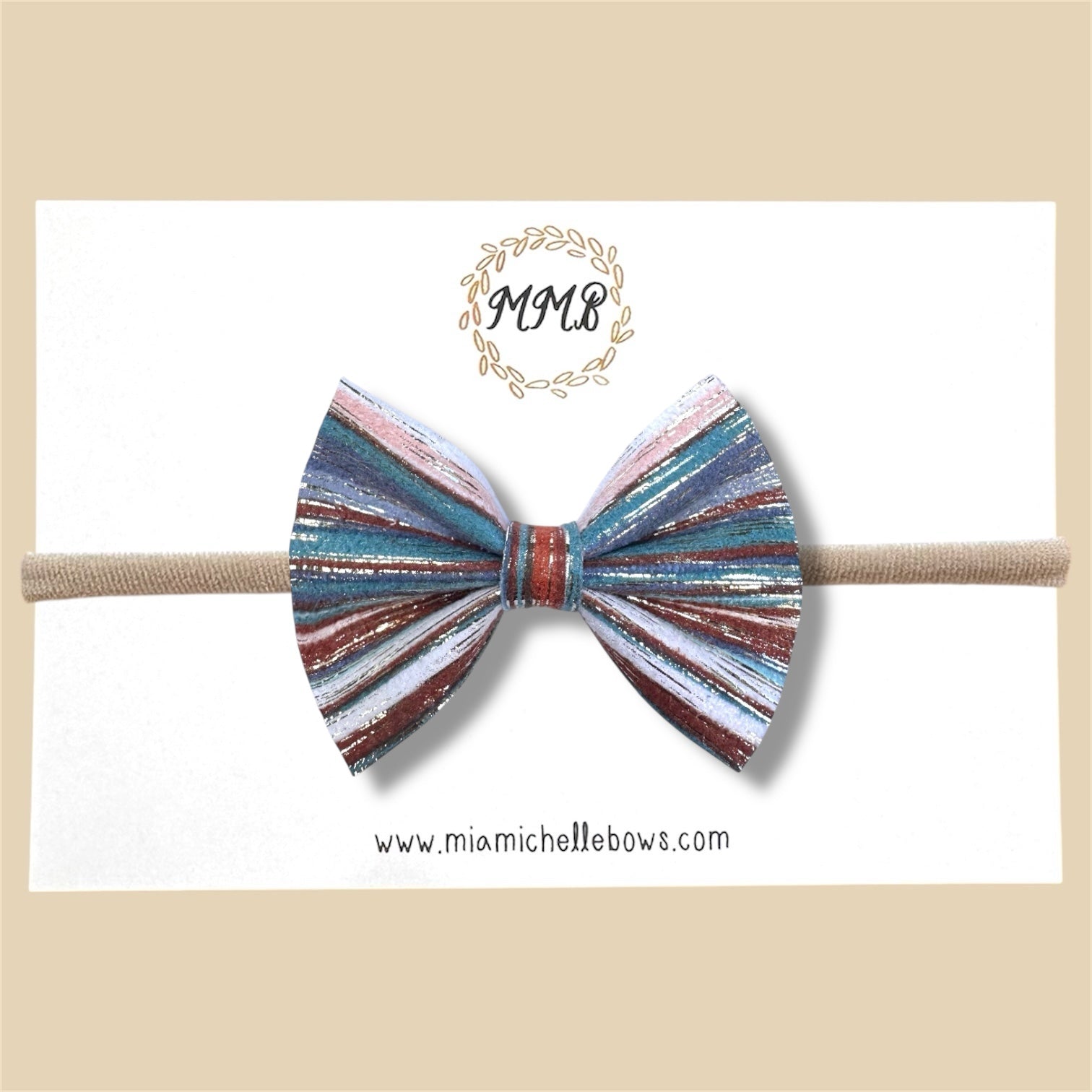 Vintage Teal Striped Vegan Leather Bow