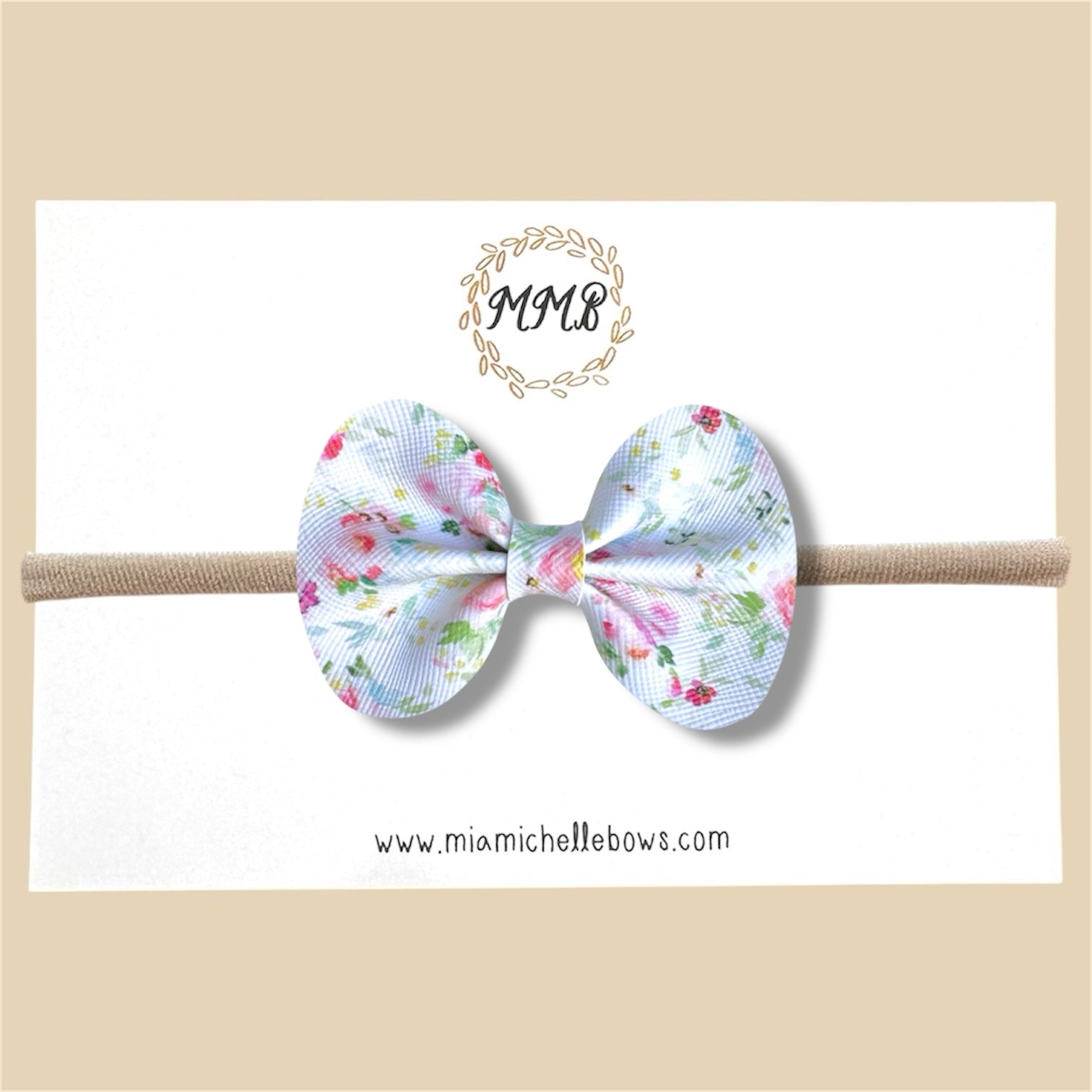 Adorable Bow made from faux leather. Measures approximately 2.75 inches across.  Available as a headband or clip!