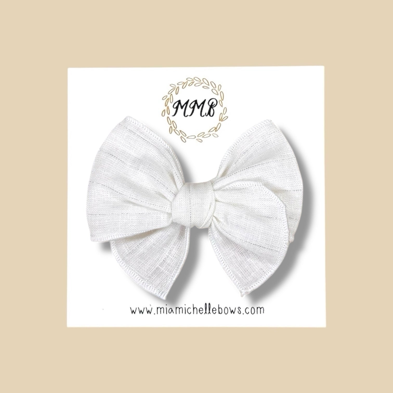 White & Silver Linen Pinstripe Fairytale Bow